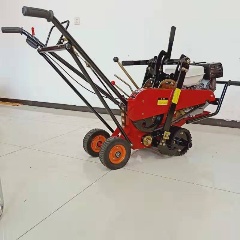 手扶自走式起草皮机:这是目前应用广泛的类型,操作者步行跟随机器作业。其结构通常包括机架、驱动轮、被动轮、切割刀、发动机、变速箱及各种调节手柄。